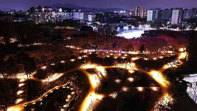 노원구 월계동 초안산 자락에 자리한 수국동산은 낮에도 아름답지만, 밤에는 또 다른 얼굴을 보여줍니다.