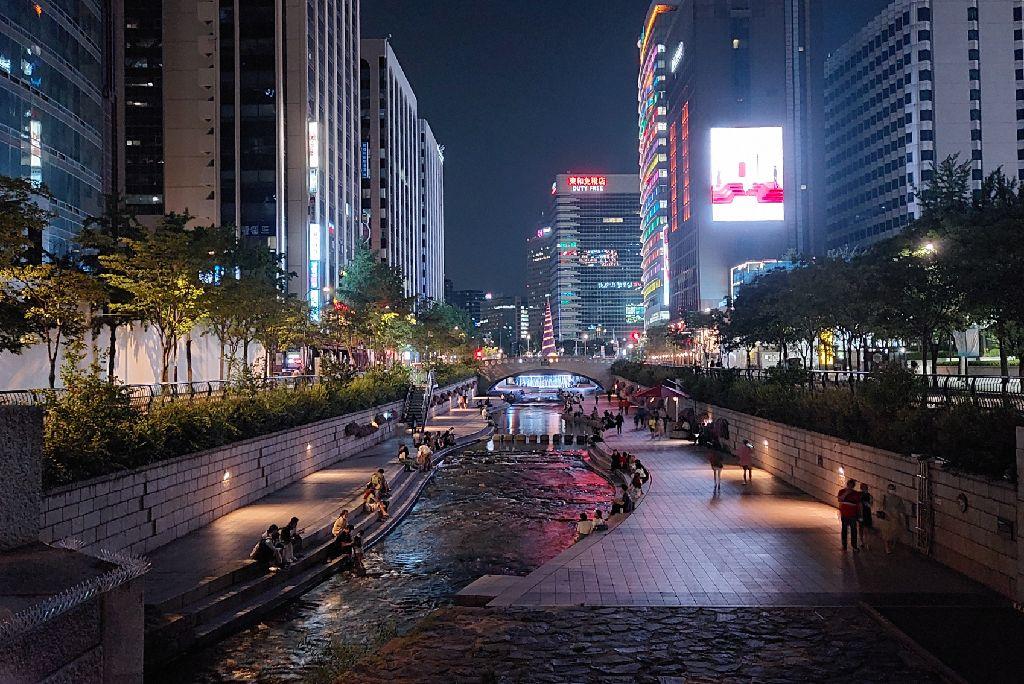 청계천 하면 주로 광화문 근처만 떠올리는데, 조금 더 내려가면 의외로 조용하고 달빛에 반짝이는 산책길이 이어져 있어요.